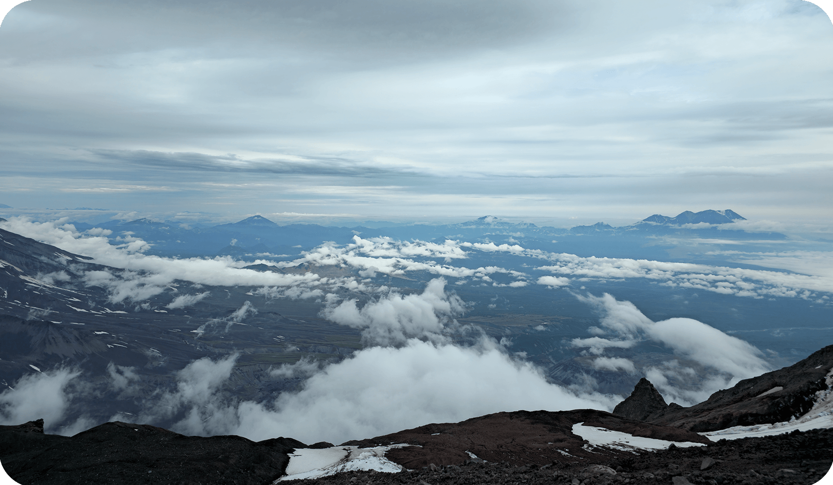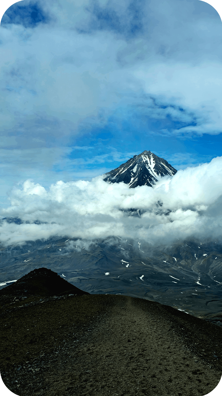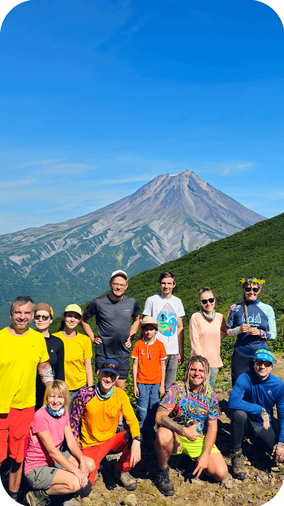 Встаём пораньше, дежурные готовят завтрак, все собирают лагерь и рюкзаки. Сегодня самый сложный день похода — переход через категорийный перевал Тенуева. Первая половина — крутой подъём по узкой тропе среди густого камчатского рододендрона: местами приходится протискиваться, карабкаться, помогать друг другу. Ноги горят, дыхание сбивается, но с перевала открывается шикарный вид на Вилючинский вулкан — один из самых красивых на Камчатке, с идеальным конусом и снежной шапкой.