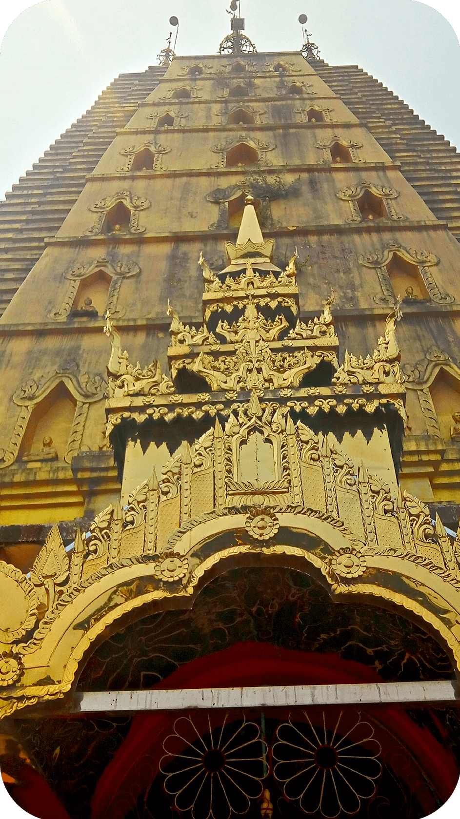Первая остановка - пагода Пхаунг Дау У: главная святыня озера, пять маленьких золотых Будд, покрытых слоем золотых листьев.