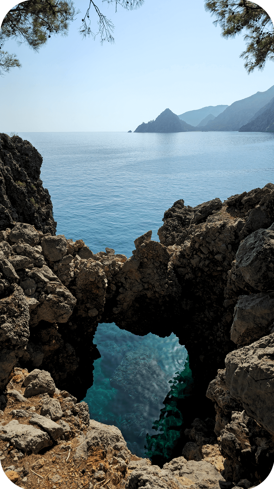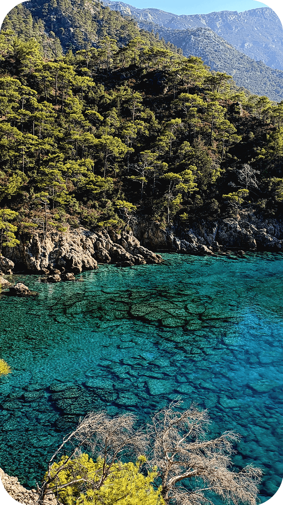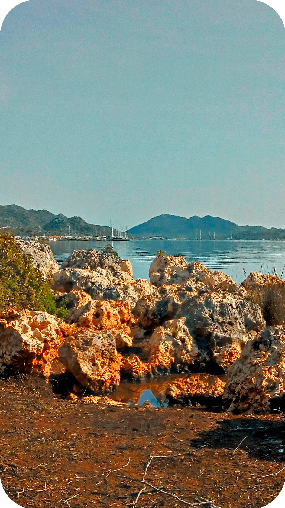 После трансфер забирает группу и везёт в Каш - около часа по серпантину с головокружительными панорамами на море и острова.